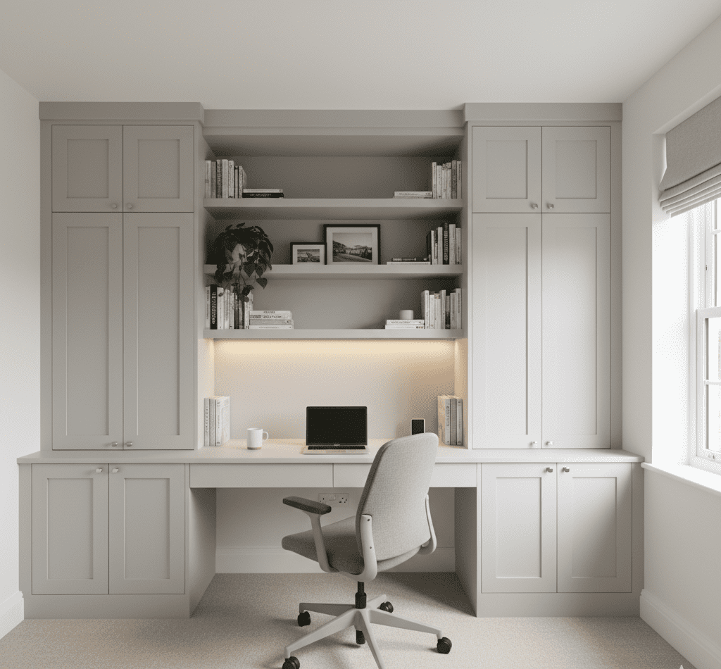 Whether it's a home office or a lounge feature, we analyse your room's ergonomics to maximise both visual impact and practical storage.
